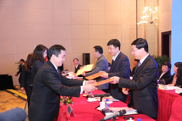 與會領(lǐng)導(dǎo)向先進(jìn)集體頒獎(jiǎng)