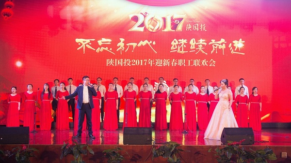 本場聯(lián)歡會由內(nèi)部員工自編自導(dǎo)自演。晚會共分“雞舞新春”“不忘初心”“繼續(xù)前進(jìn)”三個篇章,節(jié)目豐富多樣,歌曲、舞蹈、朗誦、小品、情景劇等藝術(shù)形式相得益彰,主題鮮明、節(jié)奏明快,充分表現(xiàn)了在復(fù)雜嚴(yán)峻的經(jīng)濟(jì)形勢及行業(yè)轉(zhuǎn)型大背景下,陜國投人積極應(yīng)對新挑戰(zhàn),懷抱初心,樂觀昂揚(yáng),砥礪奮進(jìn)的歷程,謳歌了陜國投人務(wù)實(shí)創(chuàng)新、敢于擔(dān)當(dāng)、甘于奉獻(xiàn)的實(shí)干精神以及對2017年繼續(xù)前進(jìn),奮力拼搏,實(shí)現(xiàn)新跨越的決心。
