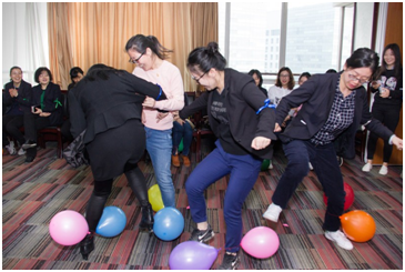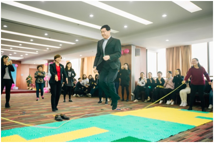 領(lǐng)導(dǎo)與員工一起參與指壓板跳繩