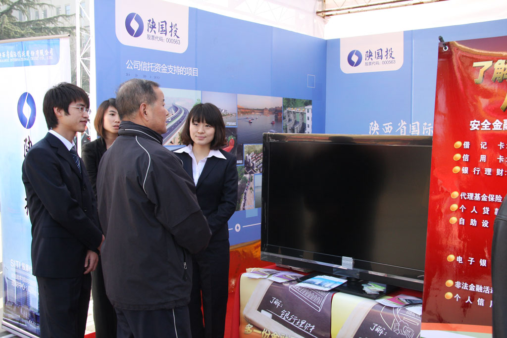 11月28日,按照中國銀監(jiān)會和陜西銀監(jiān)局的統(tǒng)一安排,公司在省體育場參加了“2010年中國銀行業(yè)公眾教育服務(wù)日活動”啟動儀式,并向現(xiàn)場群眾進行了信托理財相關(guān)知識介紹和咨詢。