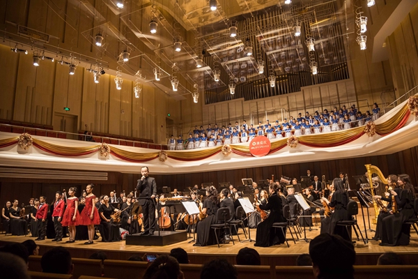 本場(chǎng)音樂會(huì)由陜西愛樂樂團(tuán)精彩演繹,音樂會(huì)在激情昂揚(yáng)的《紅旗頌》中拉開序幕,隨后《春節(jié)序曲》、《花之圓舞曲》、《狩獵波爾卡》、《斯拉夫舞曲》等經(jīng)典曲目也陸續(xù)上演。西安音樂學(xué)院女高音歌唱家與愛樂樂團(tuán)共同演繹了《梨花頌》和新疆民歌《一杯美酒》,現(xiàn)場(chǎng)觀眾沉浸在這場(chǎng)經(jīng)典視聽盛宴里。最后,快樂童聲合唱團(tuán)與陜西愛樂樂團(tuán)共同演繹經(jīng)典曲目《我的祖國》,在全場(chǎng)聽眾經(jīng)久不息的掌聲中,本次音樂會(huì)畫上圓滿的句號(hào)。