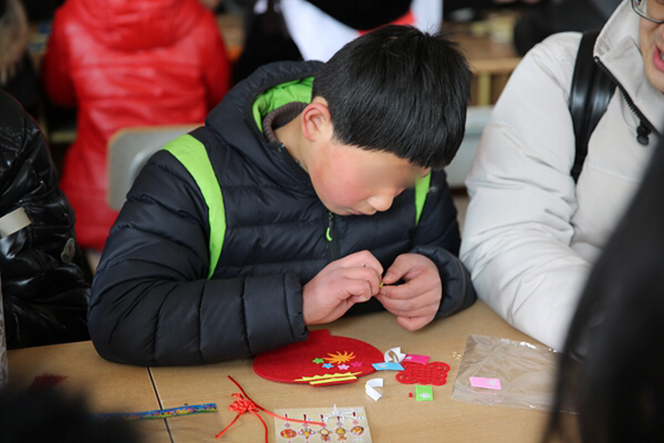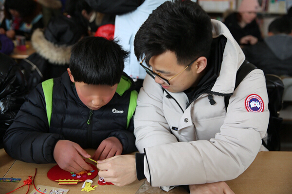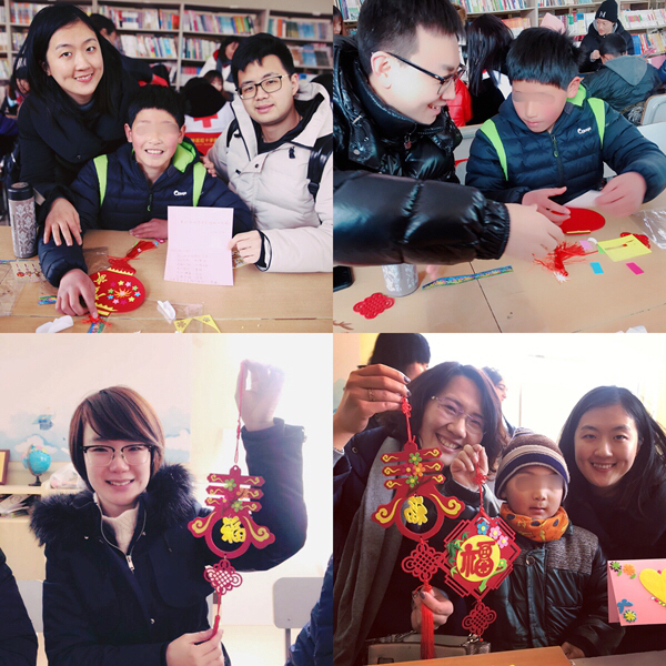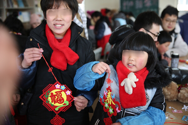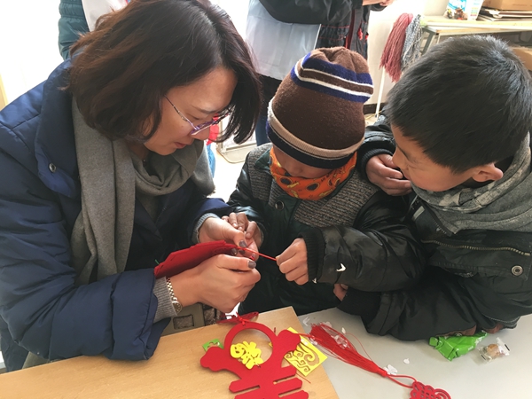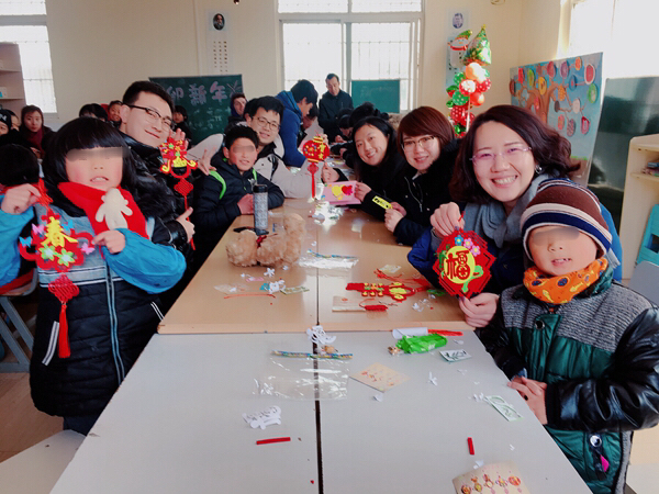 一大早,青年志愿者們便帶著精心準(zhǔn)備的小禮物和手工制作材料出發(fā)了,抵達(dá)兒童村時(shí)恰逢孩子們?cè)诙贞?yáng)光下活動(dòng)。青年志愿者們迅速融入,互動(dòng)唱歌、聊天、游戲后,為孩子們帶來了一節(jié)生動(dòng)的手工小講座,并與孩子們一起結(jié)對(duì)制作DIY新春賀卡、春節(jié)飾品??粗煺娴暮⒆佑瞄L(zhǎng)著凍瘡的小手認(rèn)真地在作品上寫下新春祝福,并將滿滿的心意回贈(zèng)時(shí),志愿者們被深深觸動(dòng),紛紛表示,愿意更盡一份心力,幫助更多不幸的孩子健康成長(zhǎng)!