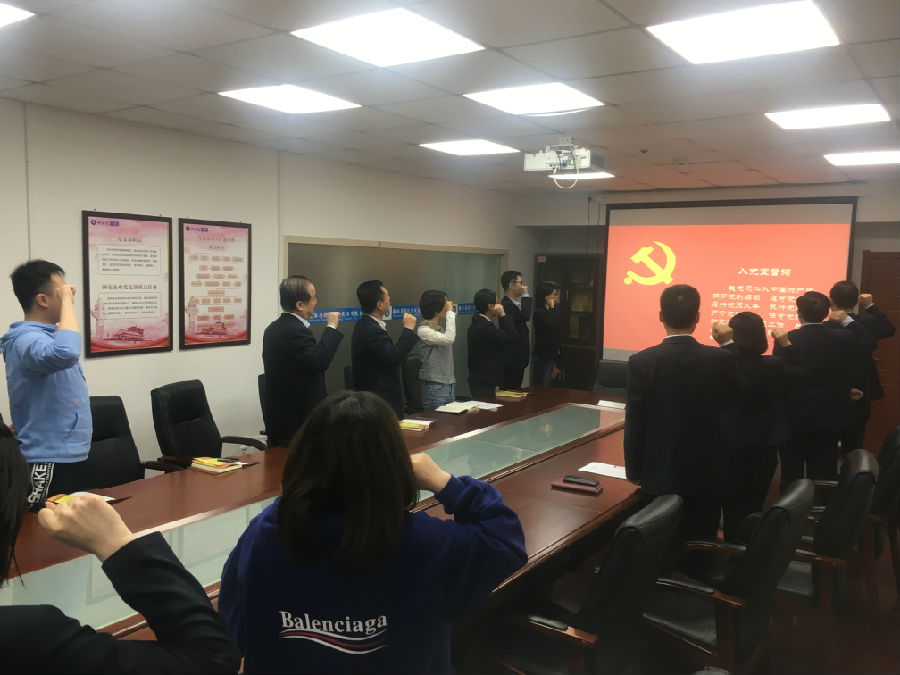 活動第二項議題,進行黨員政治生日活動,首先由支部書記南西寧同志宣布本季度過“政治生日”的黨員名單,并致辭;其次,根據(jù)活動議程依次向本季度過“政治生日”的徐晨、王方同志贈送政治生日賀卡,為其佩戴黨徽,全體黨員一起重溫入黨誓詞,增強黨內(nèi)組織生活的“儀式感”,隨后由公司黨委工作部況華同志向徐晨、王方同志贈送生日禮物,督促黨員同志不斷學習,不斷進步,最后由過“政治生日”的徐晨、王方同志發(fā)表生日感言:“通過這次黨員政治生日活動,喚起了我們的入黨初心,更加感受到身為黨員的責任和使命,也提醒自己要堅定理想信念,堅守使命責任,矢志不移的為黨和人民的事業(yè)努力奮斗”。