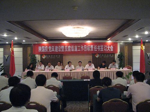 2007年8月24日下午,公司在高速神州酒店召開了陜國投黨風(fēng)建設(shè)暨反腐倡廉工作目標(biāo)責(zé)任書簽訂大會。