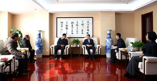 圖為,薛季民會見武安村黨支部書記安王軍,村委會主任周建梁,監(jiān)委會主任楊海倉,第一書記(代)杜濤。
