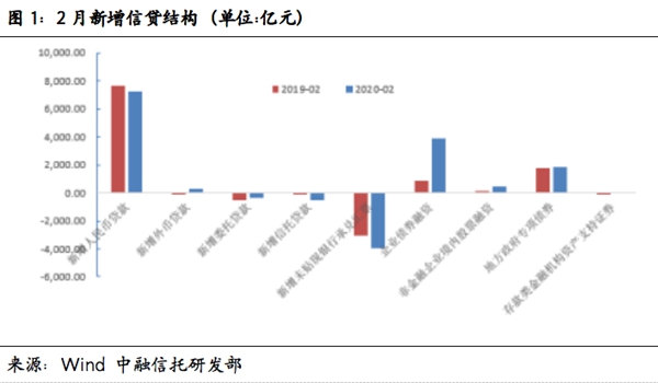 從社融表現(xiàn)來看,2月社融走低符合市場心理預(yù)期,疫情沖擊下市場尚未完全復(fù)工是主要擾動因素,信貸活動和企業(yè)融資是2月社融數(shù)據(jù)的主要增長力量。