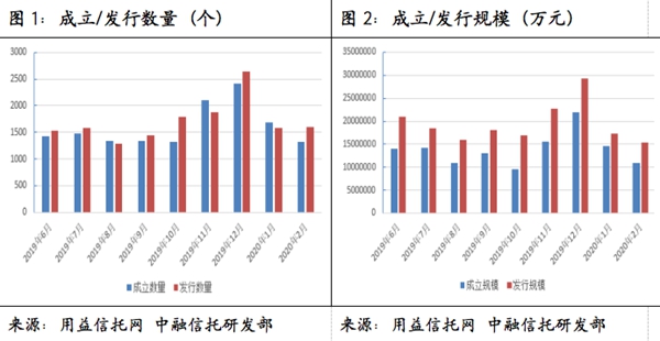 根據(jù)用益信托公布的數(shù)據(jù)來看,受疫情影響,2月集合信托市場發(fā)行和成立市場延續(xù)了1月的下滑勢頭,但尚處于市場預(yù)期之內(nèi)。