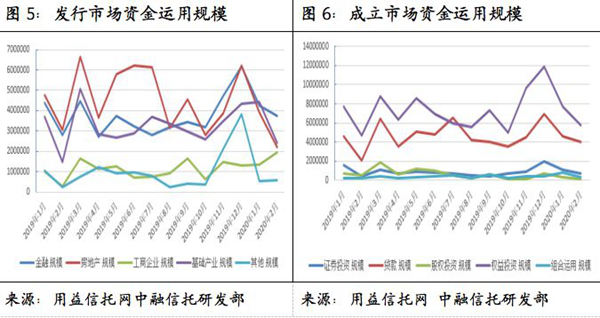 相較于基礎(chǔ)產(chǎn)業(yè)類信托,金融類信托受到疫情影響相對較小,其主要投向的信托、消費金融等領(lǐng)域?qū)τ谛磐泄径哉箻I(yè)更加容易判斷,更易通過遠(yuǎn)程化、電子化進(jìn)行開展,因此在2月取得一定增長也是市場合理選擇后的結(jié)果。