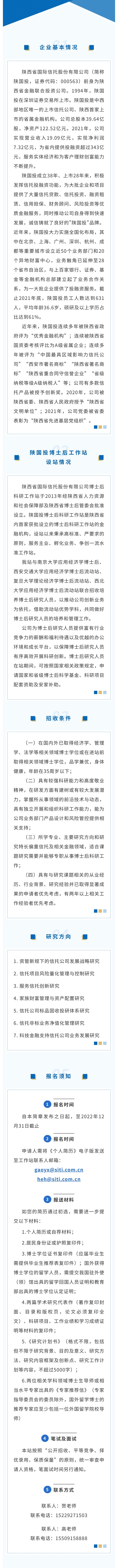 陜國投信托博士后工作站招聘簡章